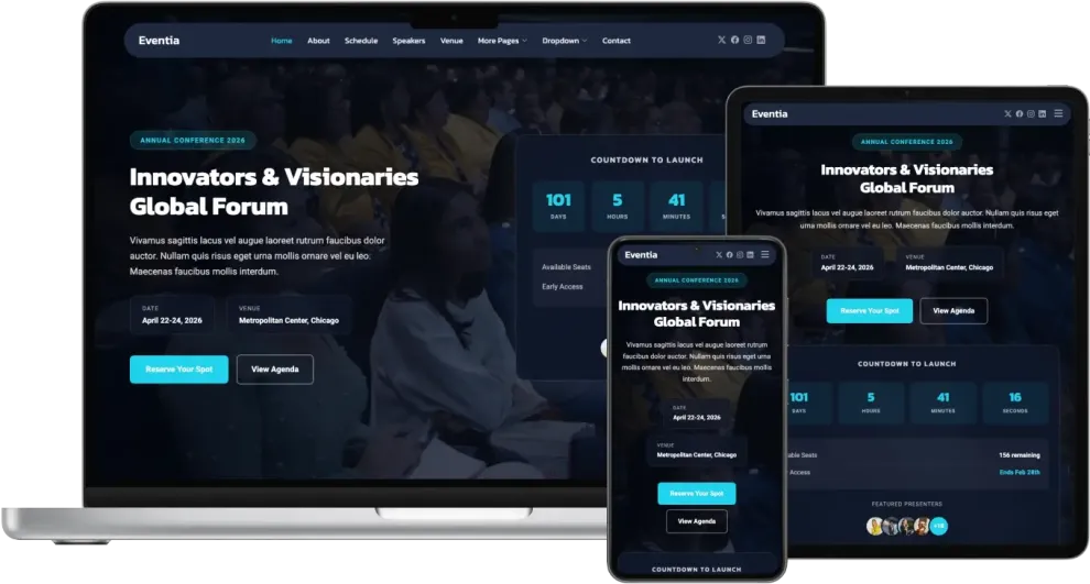 If you need a clean, credible event landing page that supports promotion, sign-ups, and attendee confidence, Eventia gives you a practical foundation you can brand, update, and publish fast—making it a strong fit within your broader collection of website templates.